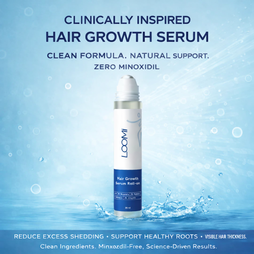 Loomi Hair Growth Serum is a clinically inspired scalp support formula designed to help support stronger roots, reduced shedding, and healthier-looking hair without drugs, harsh actives, or dependency.