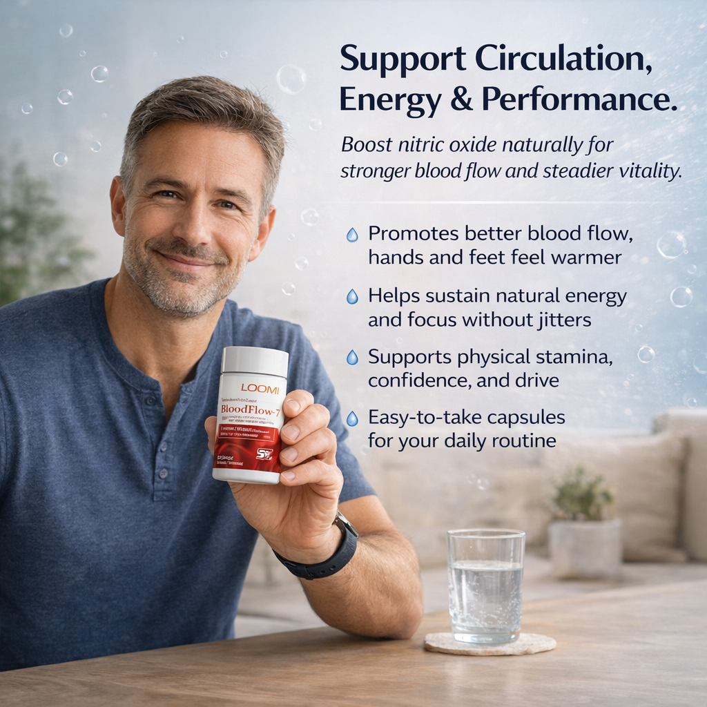 If you use Loomi™ BloodFlow daily for 30 days and don’t feel stronger circulation, steadier energy, or improved physical performance, we’ll give you a full refund. No questions. No pressure. Just real blood flow support or your money back.