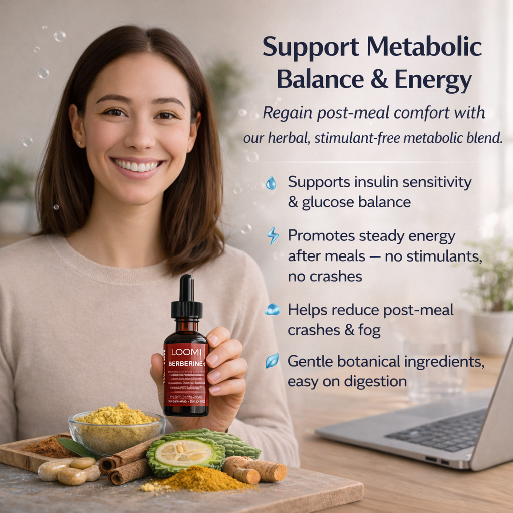 Loomi™ Berberine+ includes botanicals traditionally used to support digestive balance, which in turn supports healthier metabolic signaling. When digestion improves, many people notice less bloating, clearer thinking, and better tolerance to everyday meals.